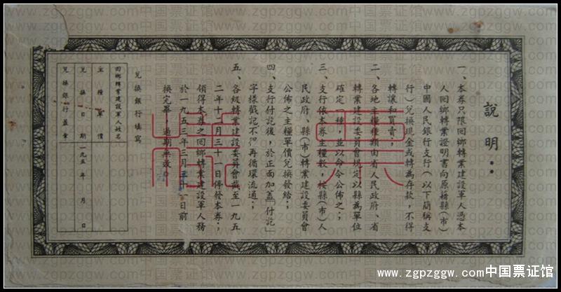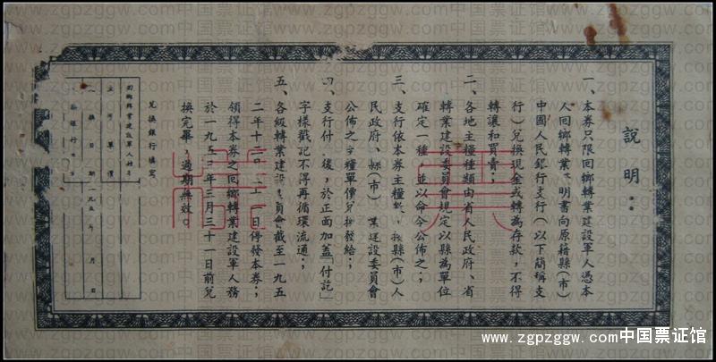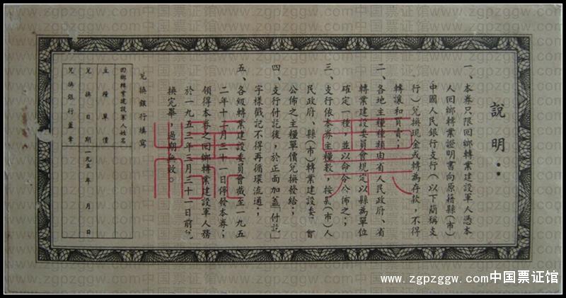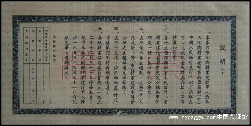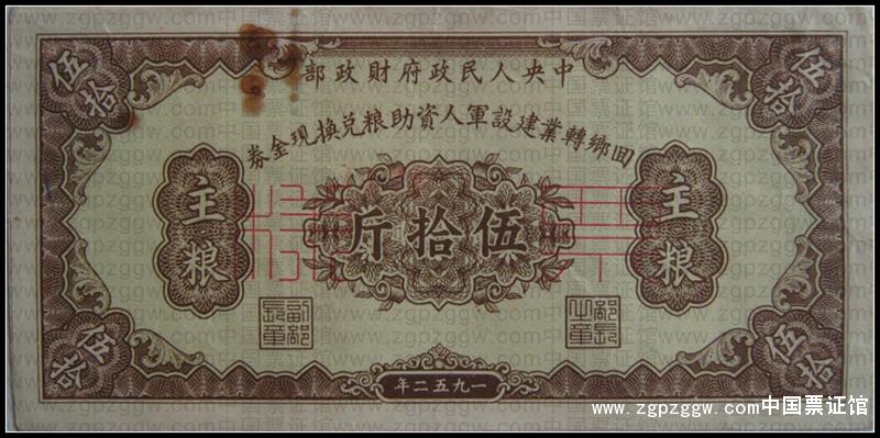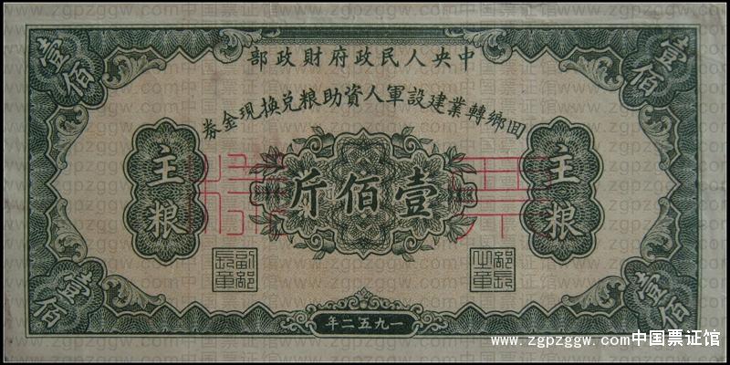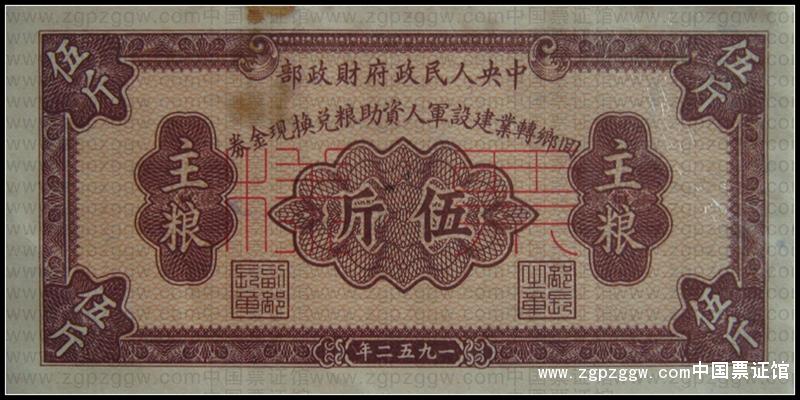 1952年中央人民政府财政部回乡转业建设军人资助粮兑换现金券